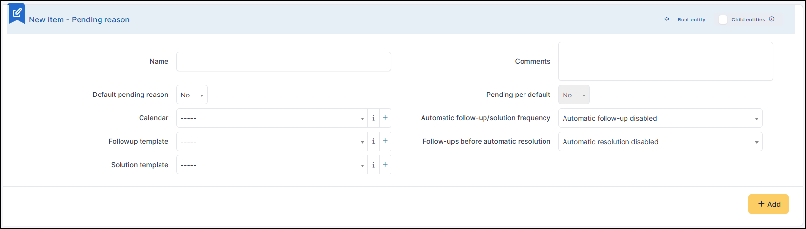 * **Mise en attente par défaut** : définissez si elle sera présélectionnée lorsque la raison de mise en attente est activée ;